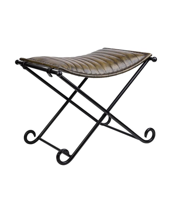 Banqueta de metal y piel gris