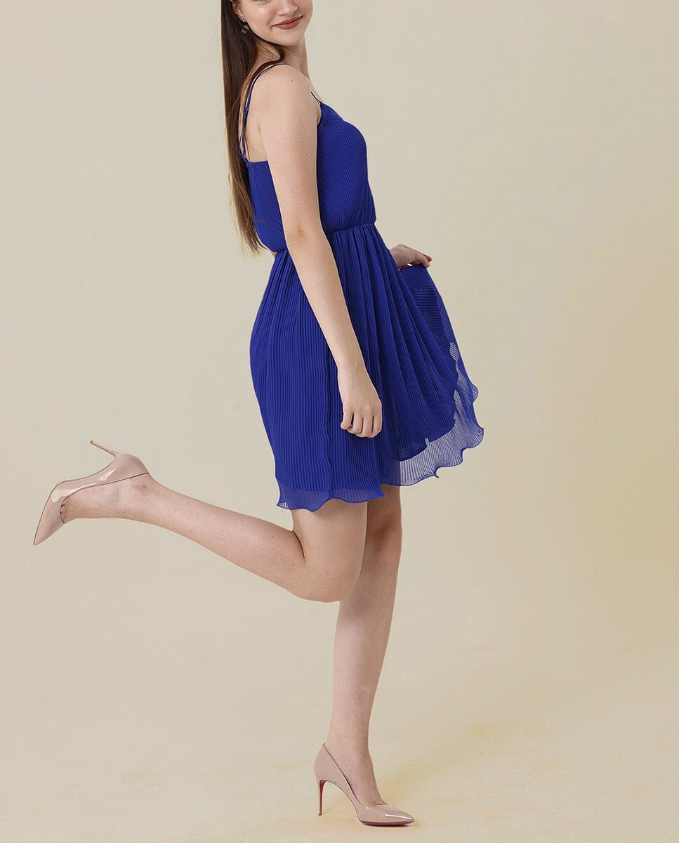 Vestido de mujer de tirantes ajustables de tejido plisado y acabado con pequeña onda