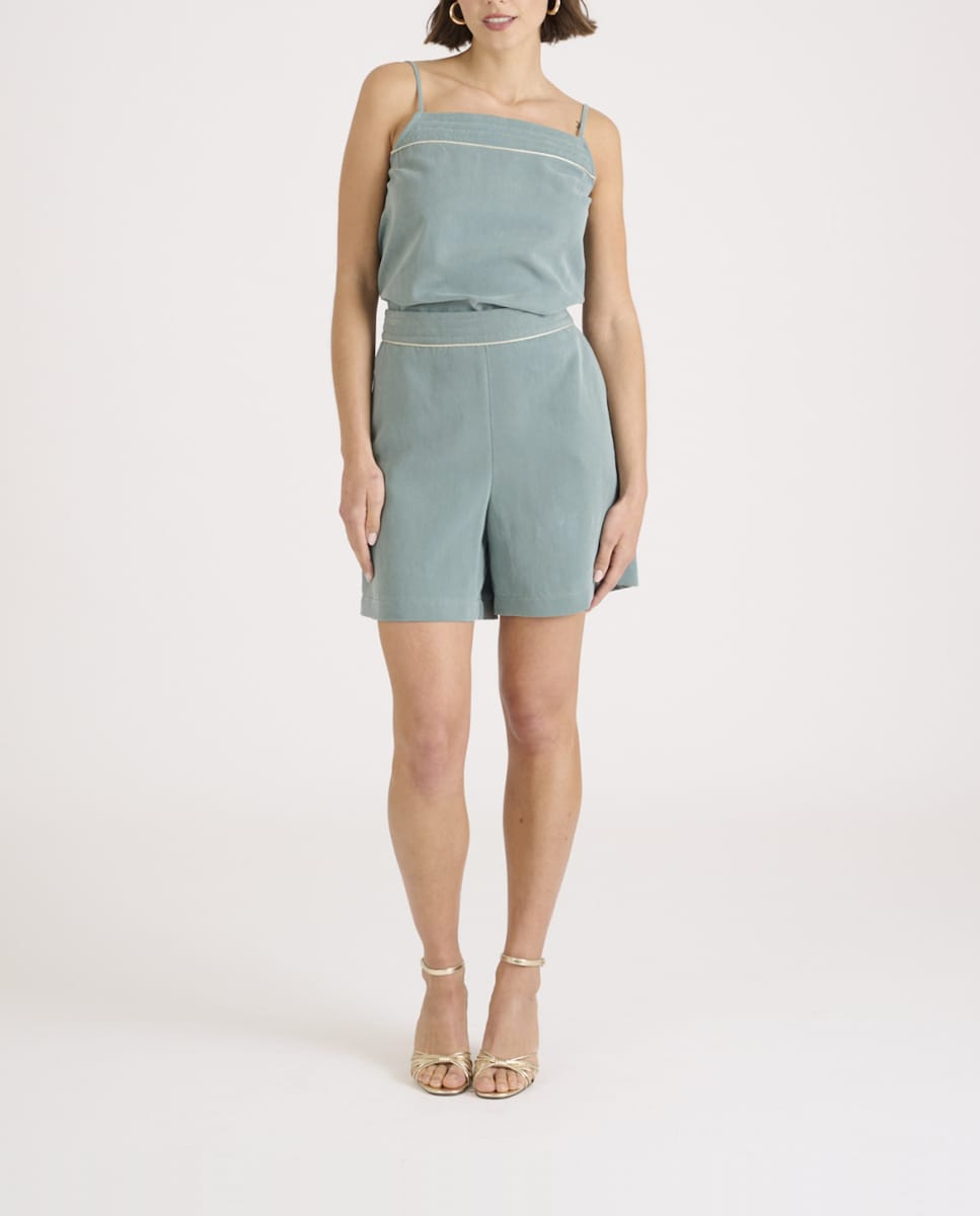 Short de mujer bolsillos laterales y ribete dorado