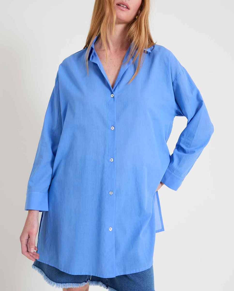 Camisa de mujer cuello básico y manga larga