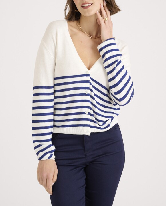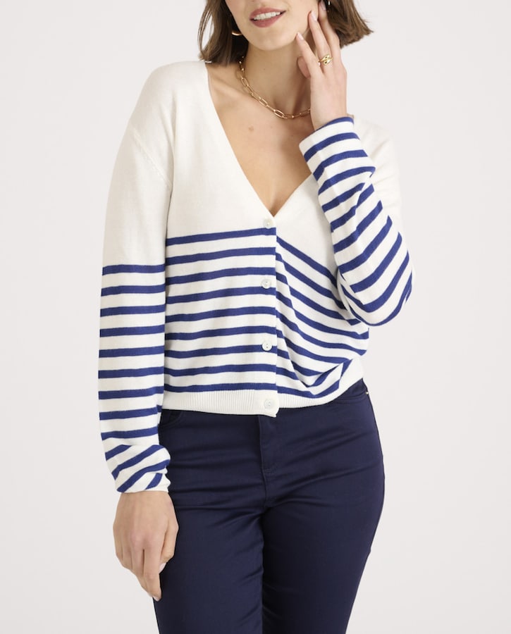 Cárdigan de mujer escote pico y rayas marineras