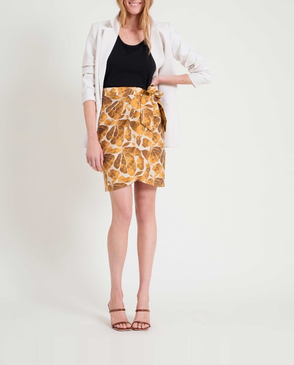 Falda de mujer estampado hojas y forma corta