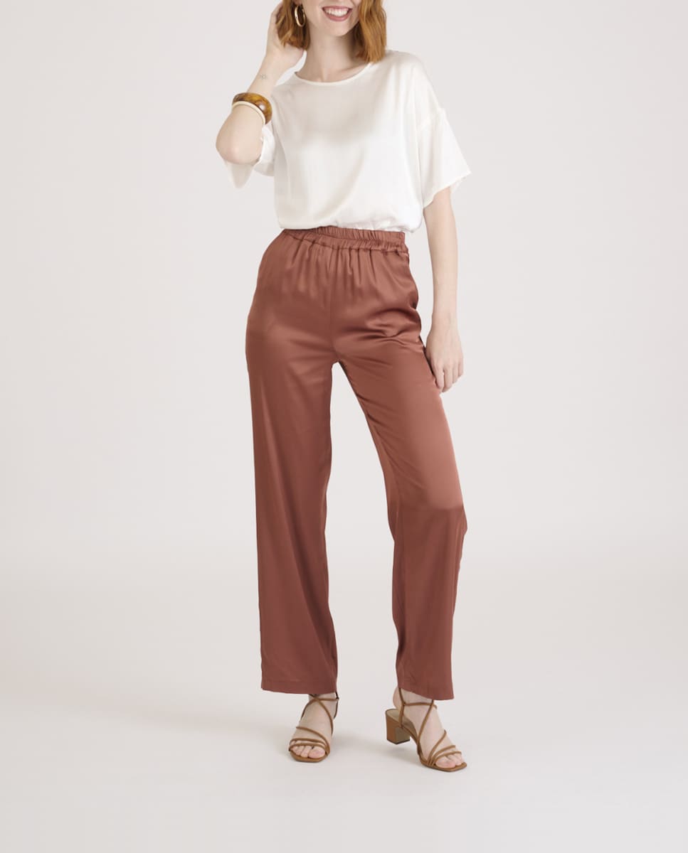 Pantalón de mujer corte recto y cintura elástica