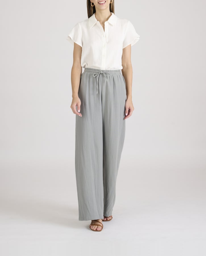 Pantalón de mujer forma ancha y bolsillos laterales