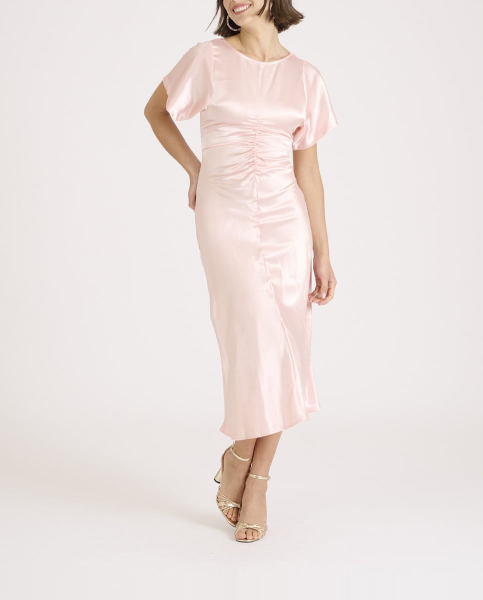 Vestido de mujer largo midi y tejido satinado
