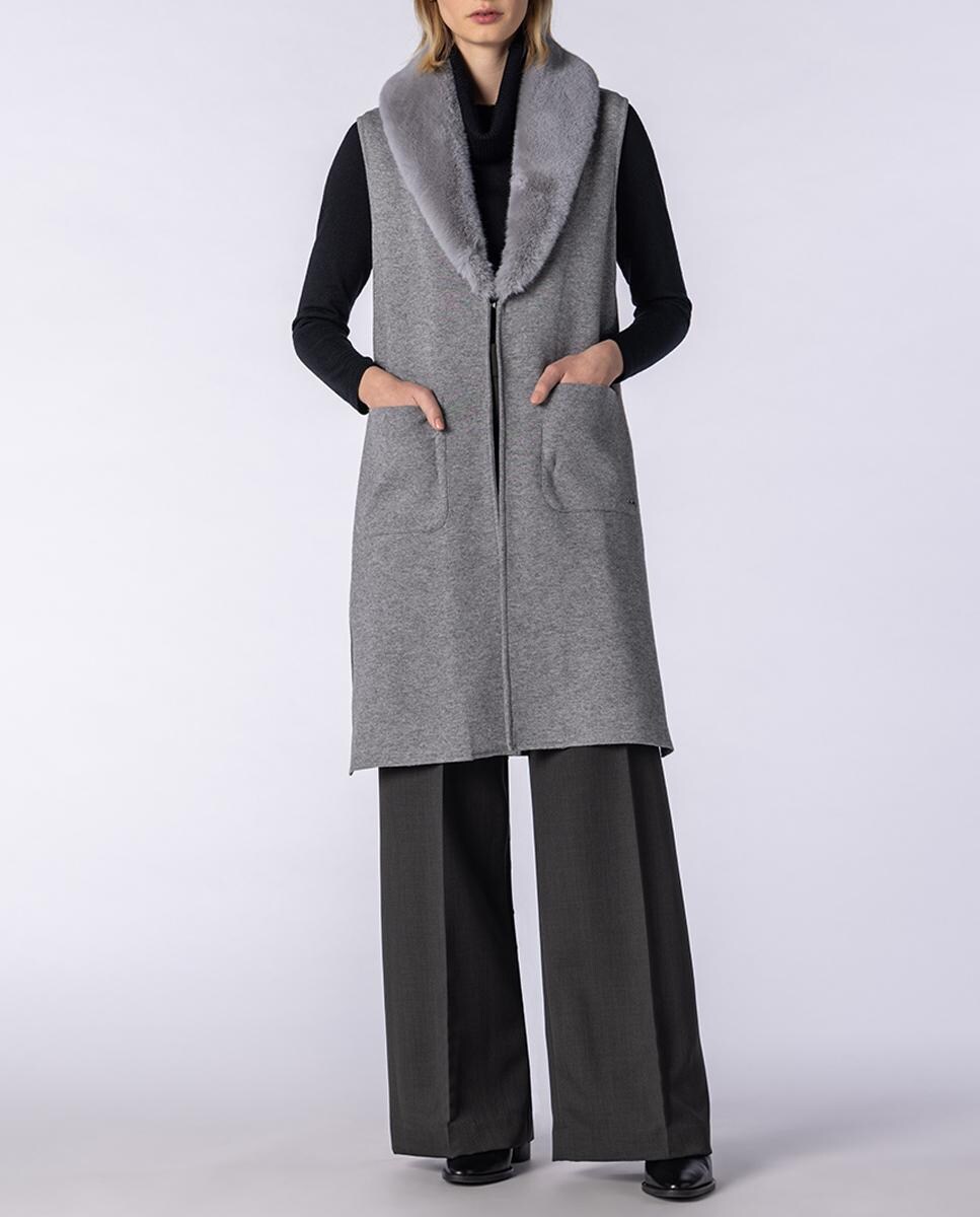 Chaleco de mujer de punto liso con bolsillos y cuello de pelo