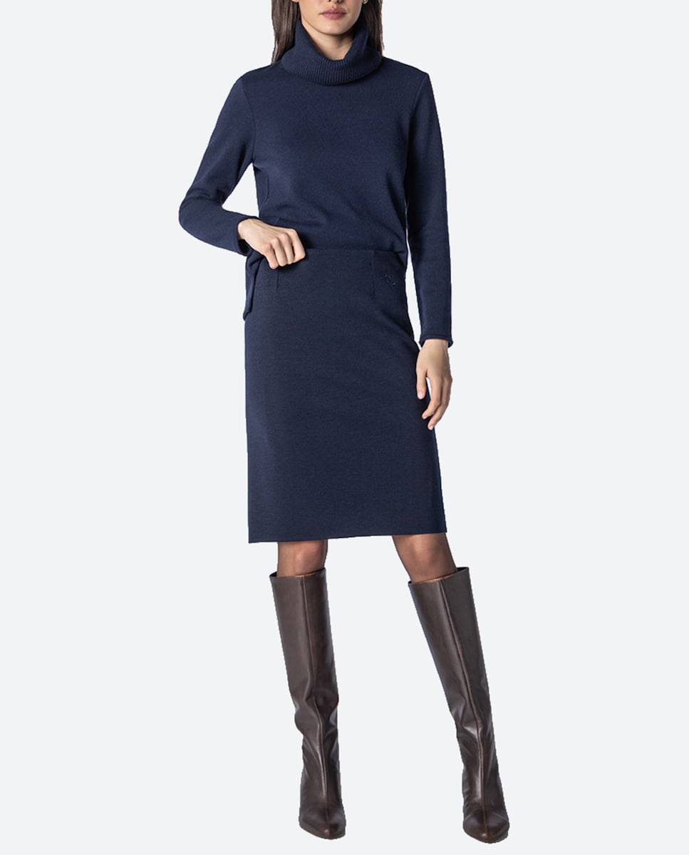 Falda de punto, lisa y recta