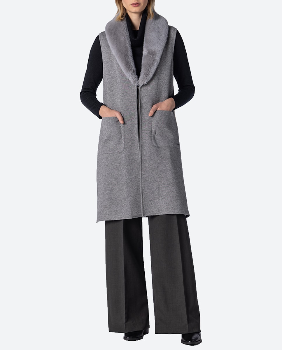 Chaleco de mujer de punto liso con bolsillos y cuello de pelo