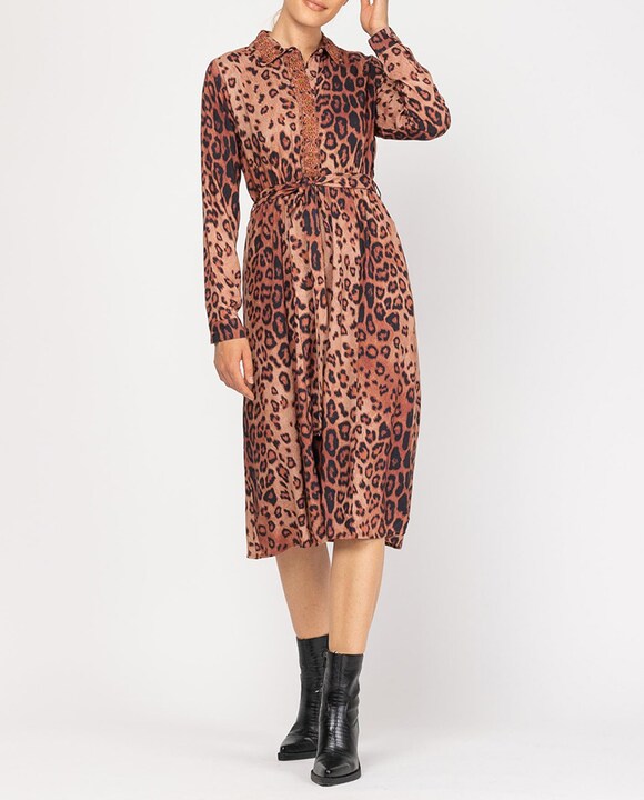 Vestido midi con corte en cintura y falda evasé