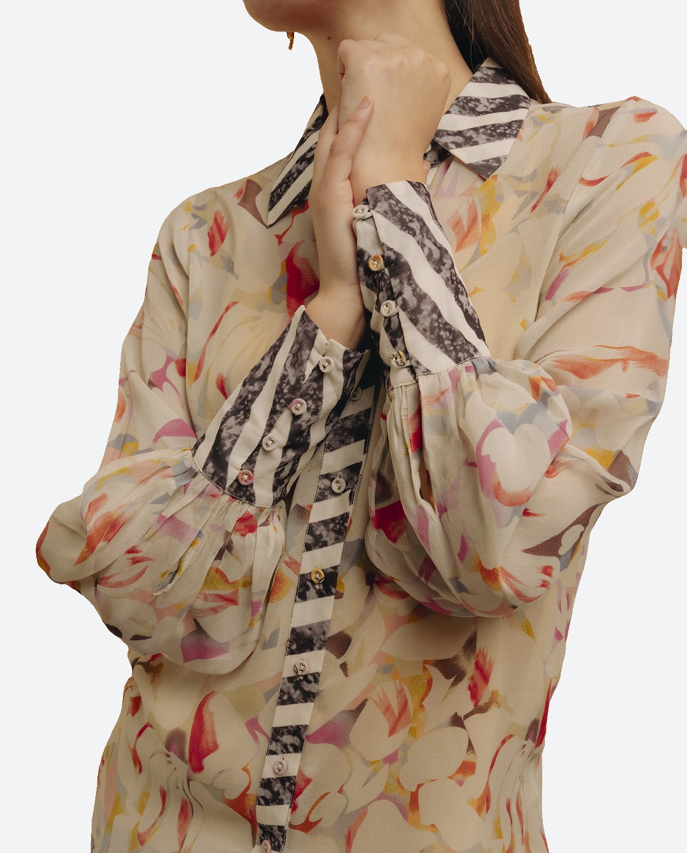 Camisa con manga larga y estampados combinados de mujer