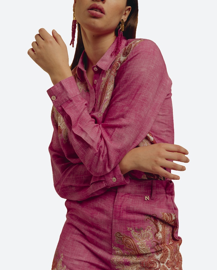 Camisa con manga larga y estampado posicional de mujer