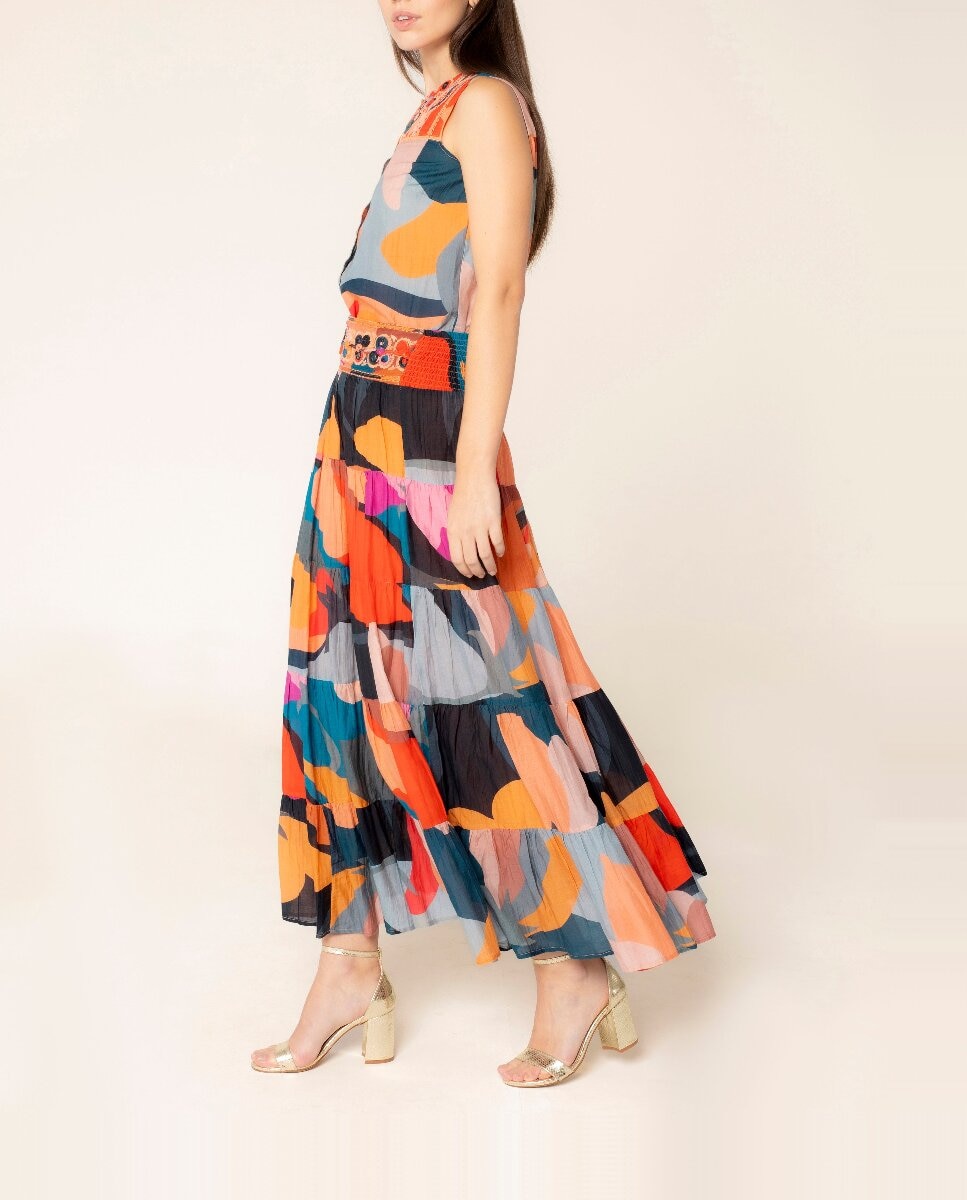 Falda bordada con estampado geométrico