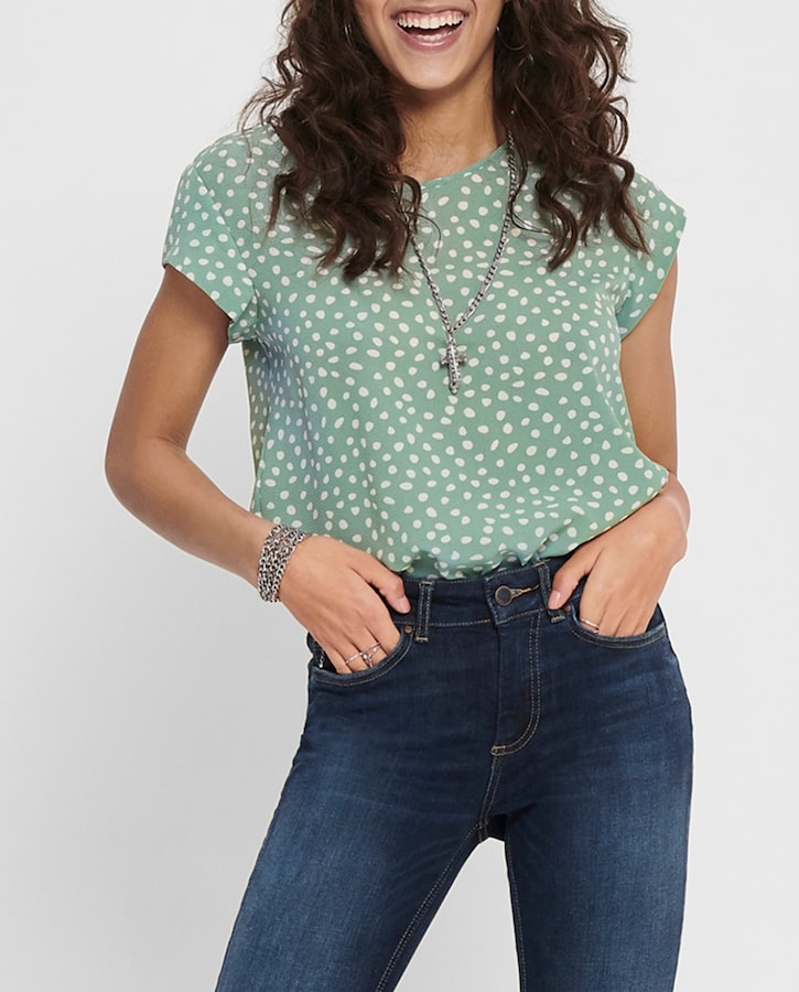 Top de mujer estampado de manga corta y cuello redondo