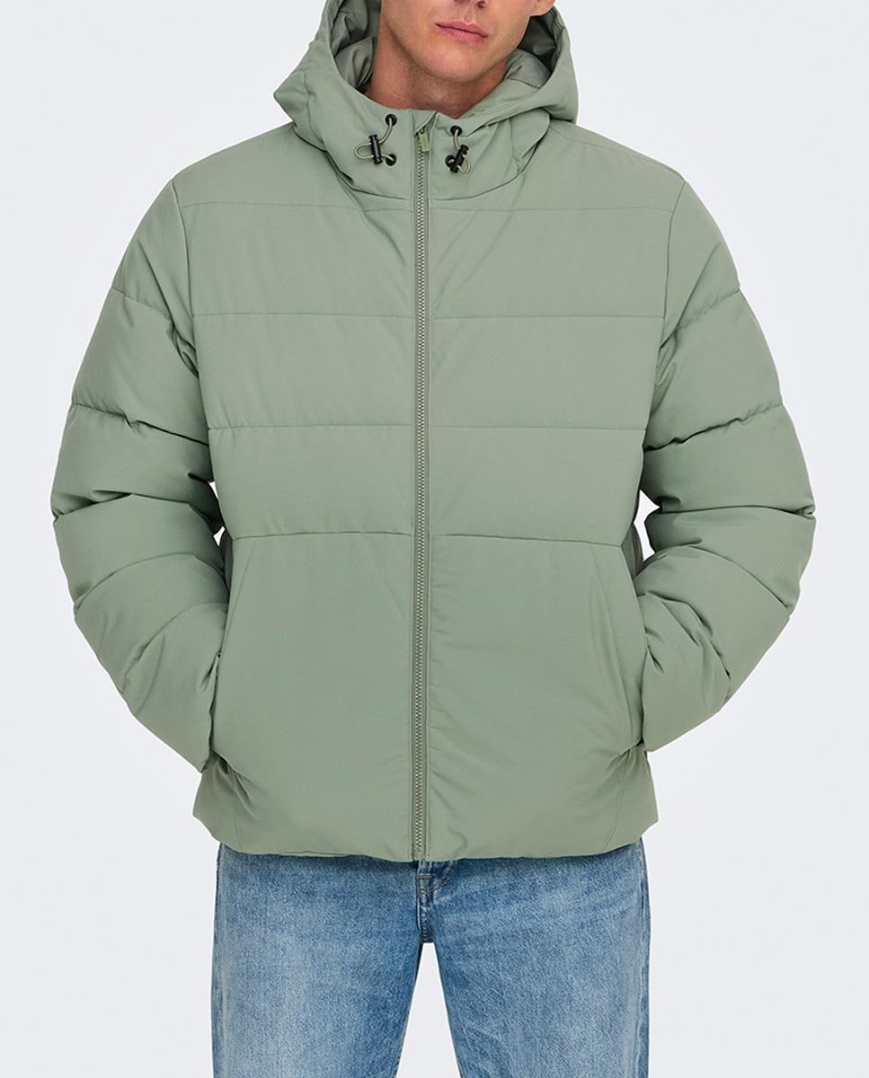 Abrigo acolchado con capucha de hombre