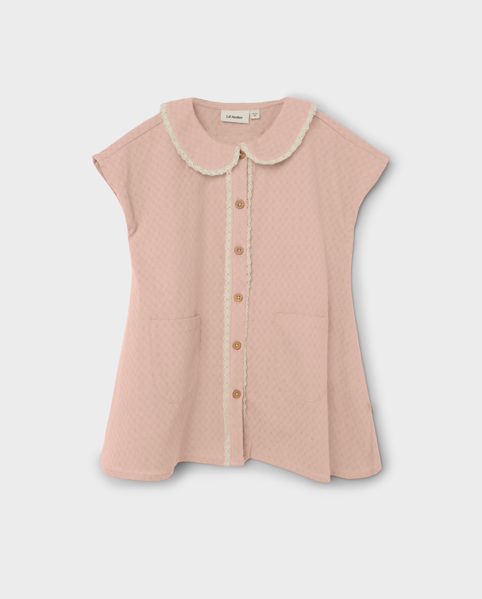 Vestido de niña de manga corta con detalle cuello con bordado