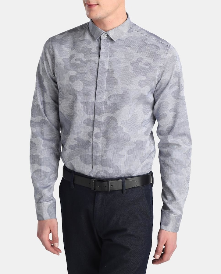 Camisa de hombre Emporio Armani slim estampada azul