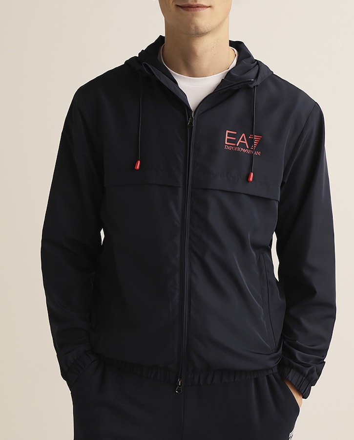Cazadora de hombre azul con capucha