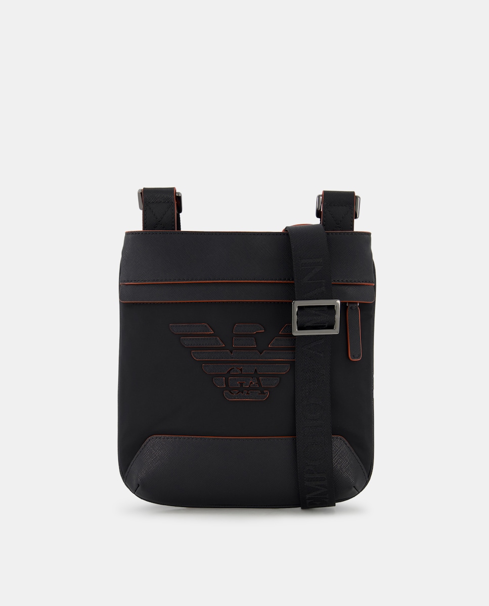 Bandolera de hombre en safiano con logo en relieve