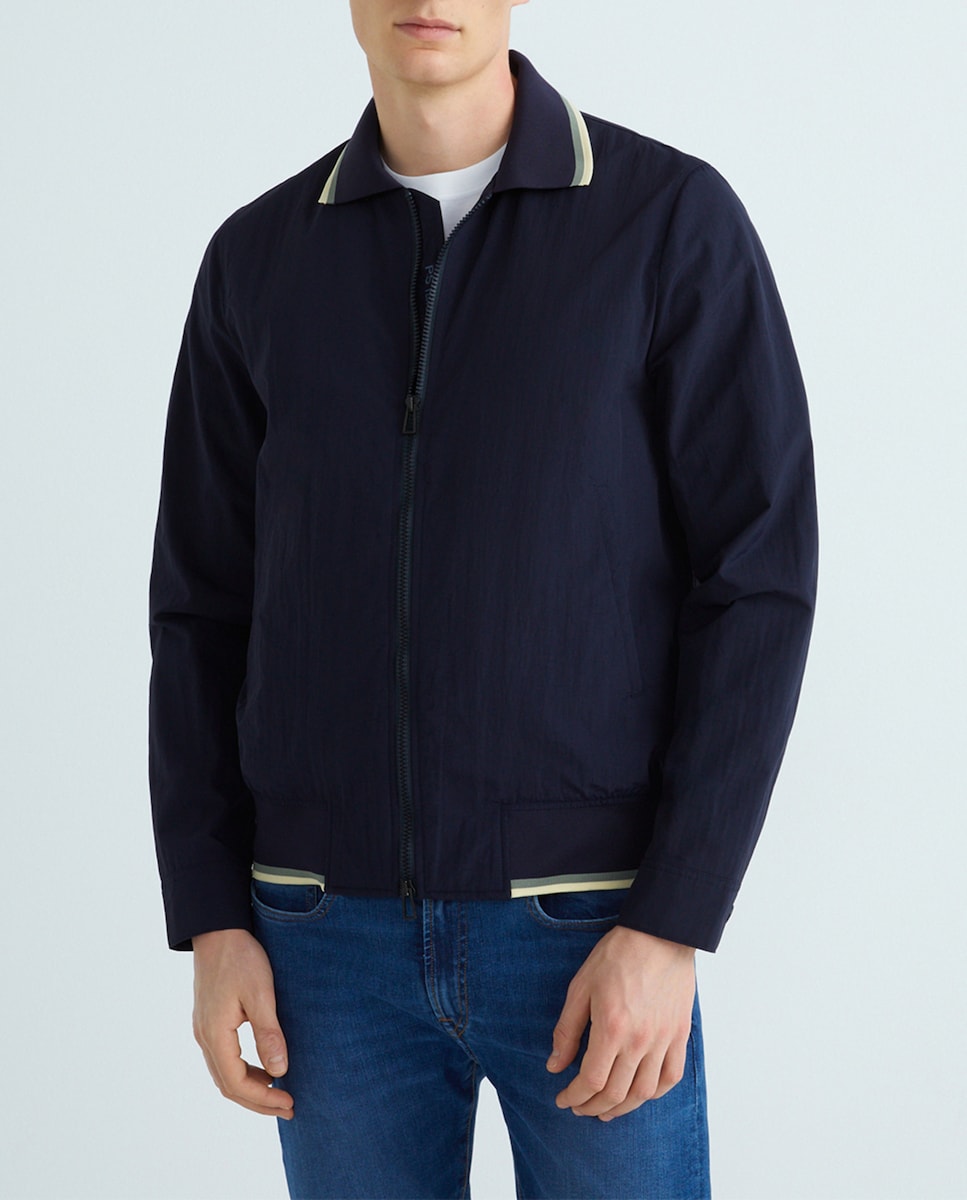 Chaqueta de hombre harrington en nylon reciclado con cremallera