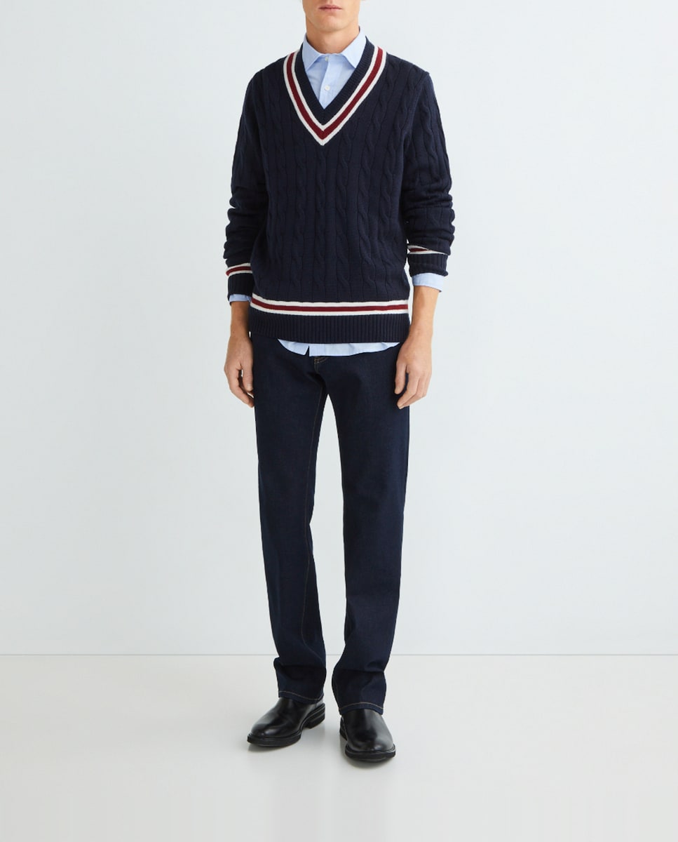 Jersey de lana 100% merino estilo cricket de hombre con el cuello pico