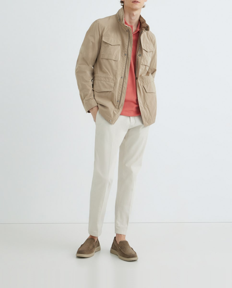 Fieldjacket 4 bolsillos microfibra acabado moss