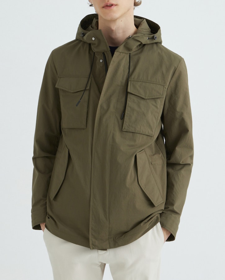 Parka corta con capucha tejido microraya