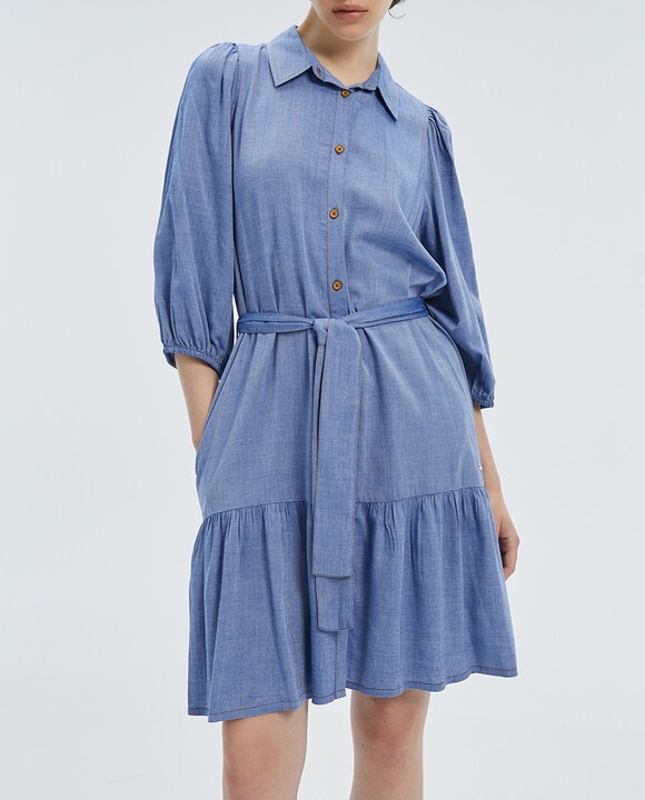Vestido camisero de mujer midi manga francesa abullonada sin forro
