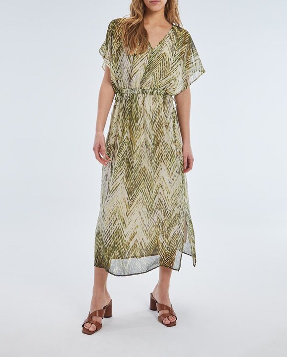 Vestido largo estampado de manga corta y escote pico
