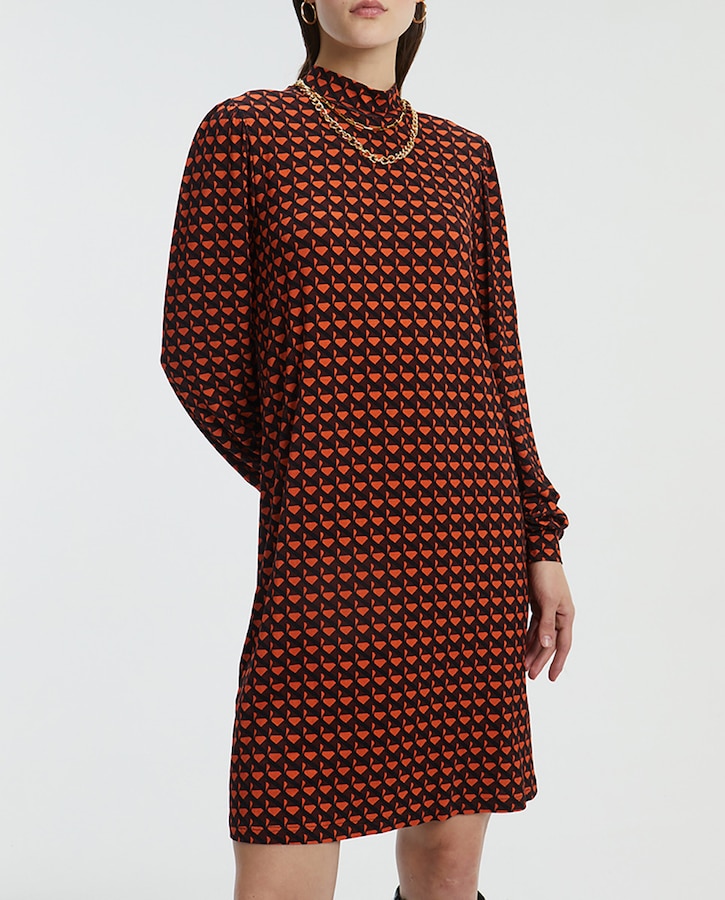 Vestido corto en punto estampado manga larga
