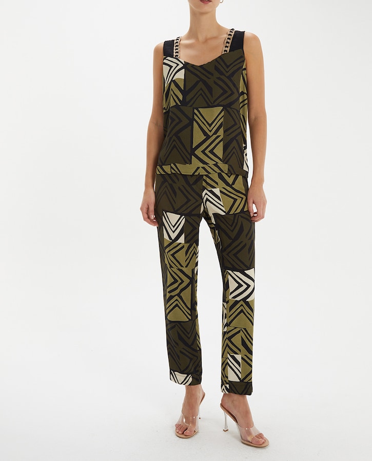 Top estampado étnico de mujer con cinta de adorno en los tirantes