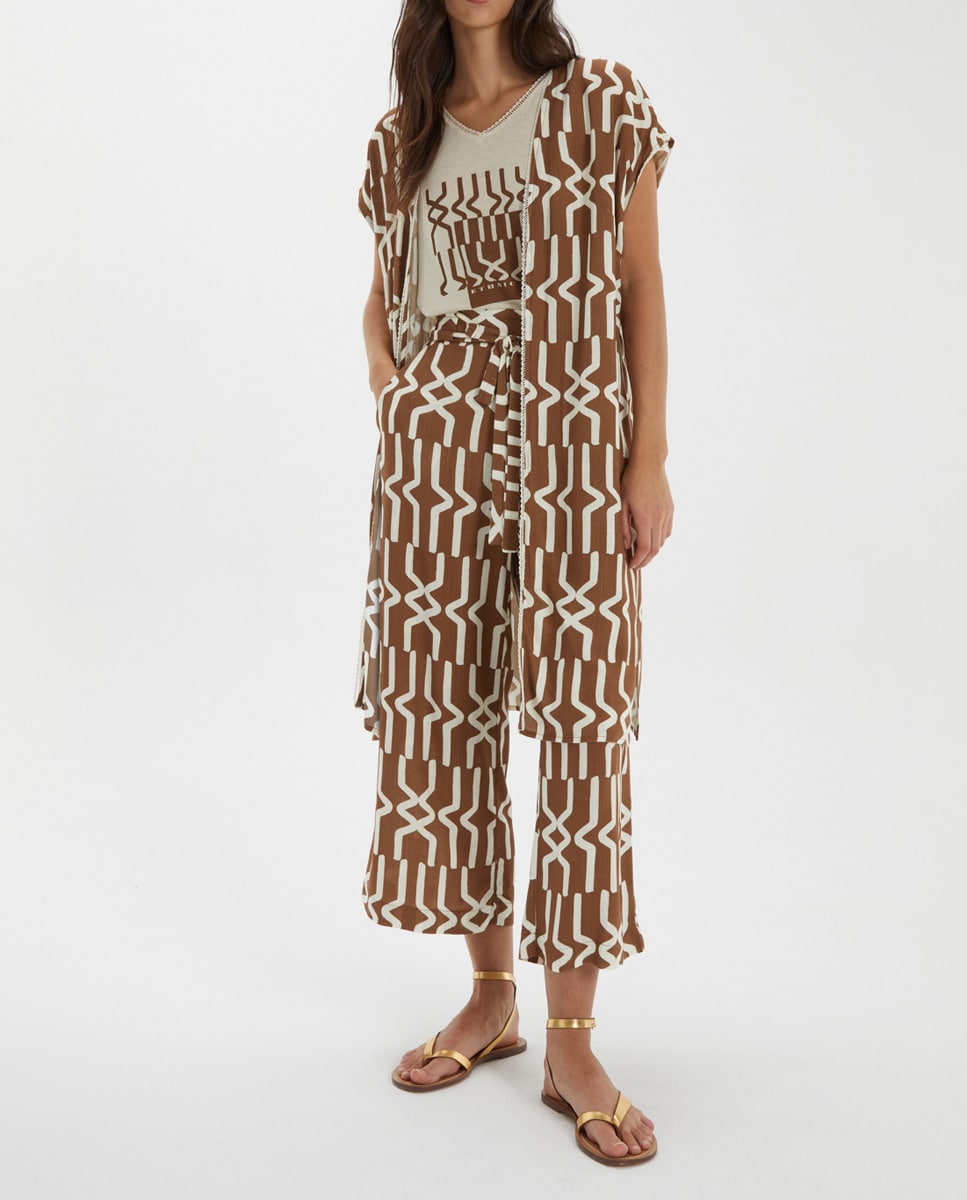 Blusón largo estampado de mujer de manga corta