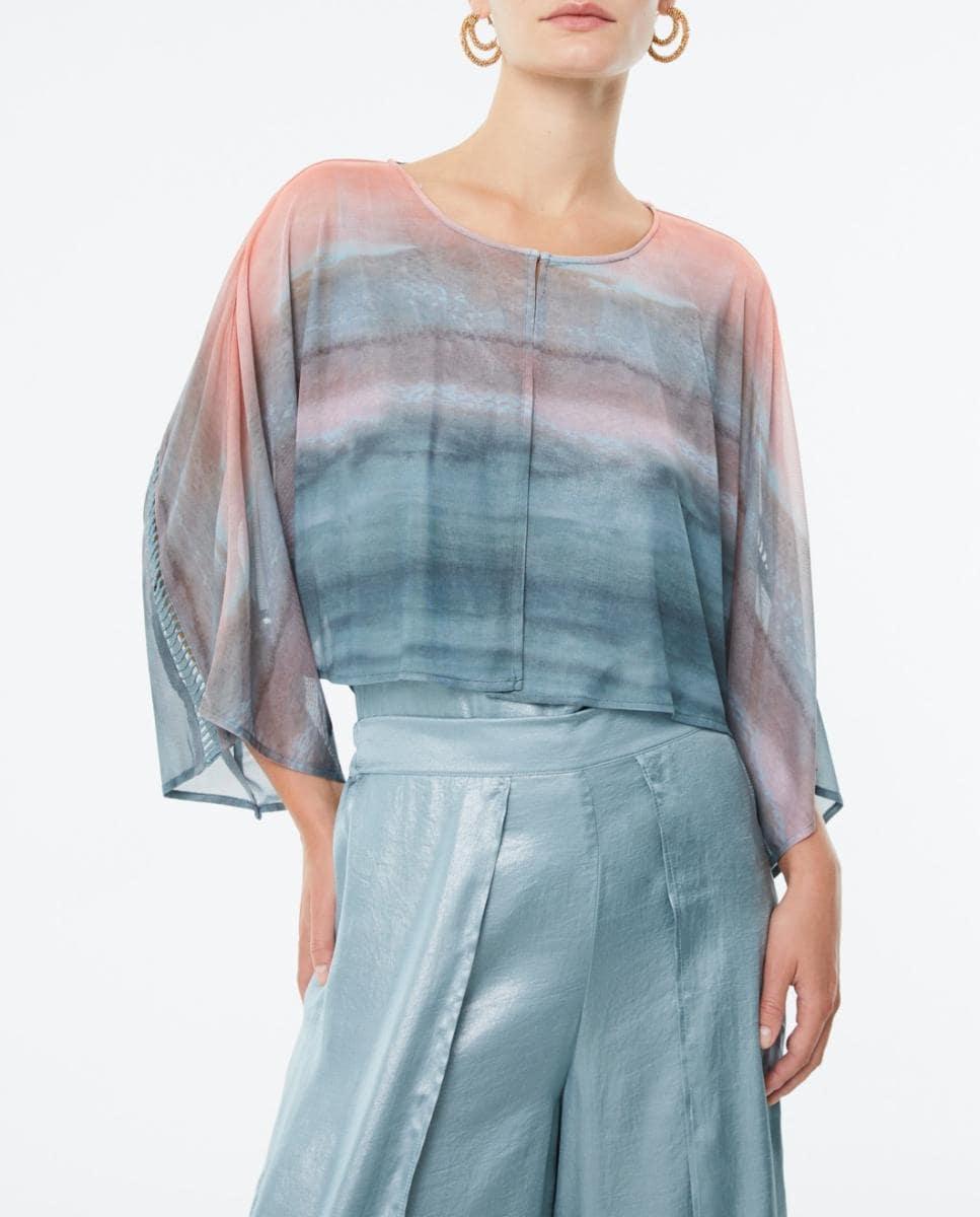 Chal corto de mujer en tul estampado