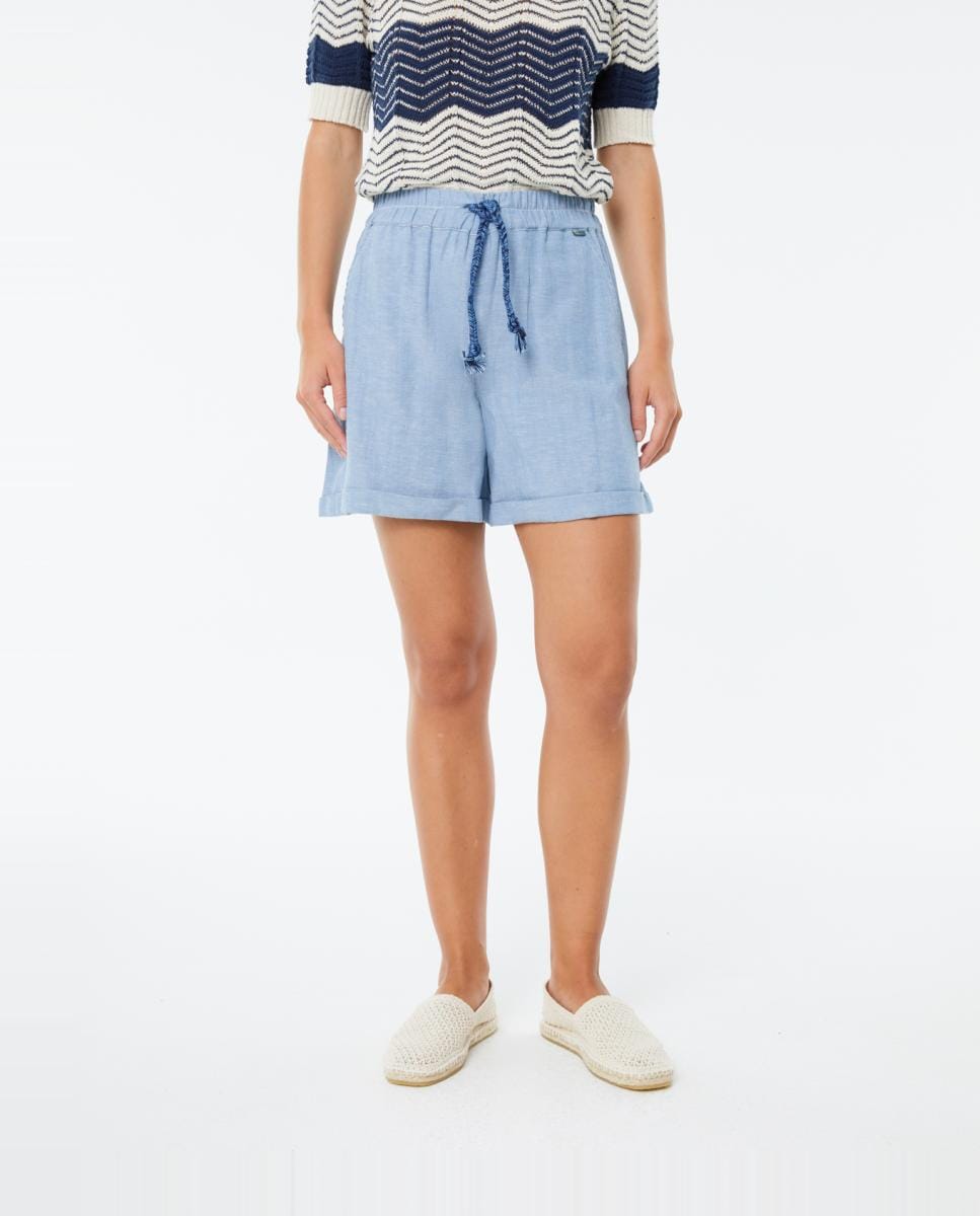 Berrmuda ancha de mujer de tiro alto con algodón y lino