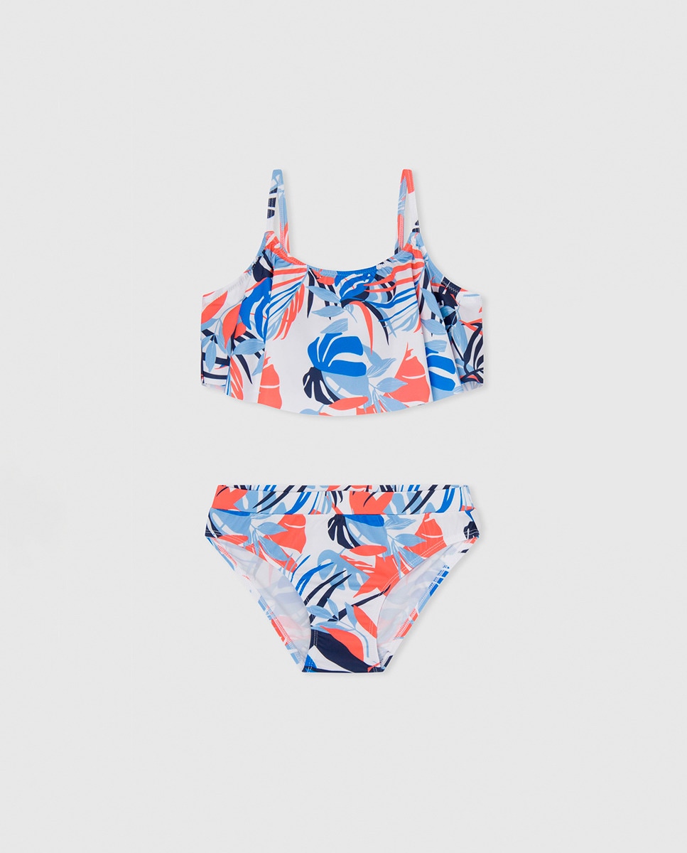 Bikini de niña, estampado de flores con coletero