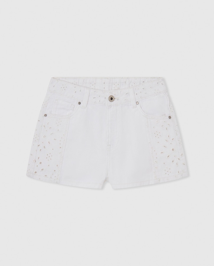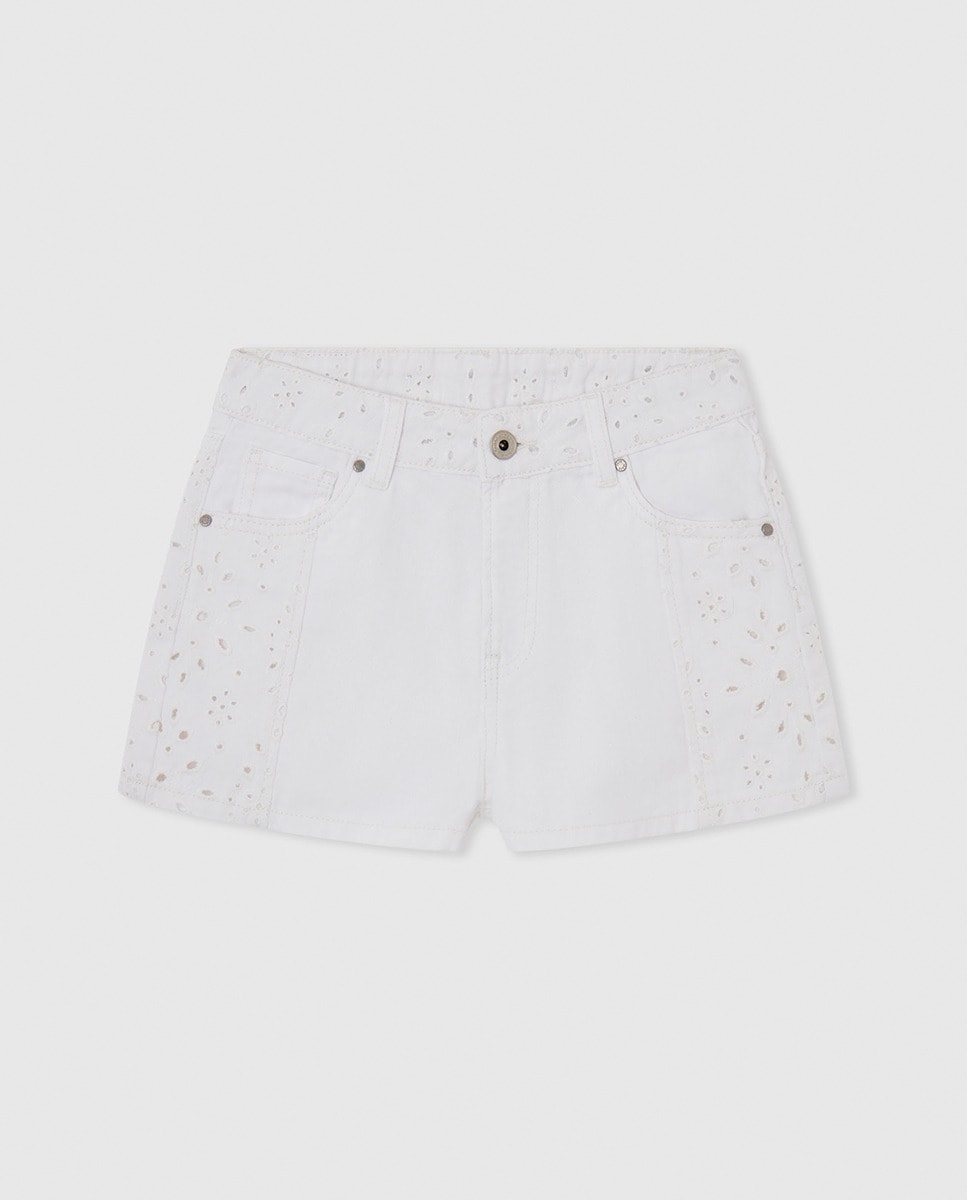 Pantalón corto 100% algodón con detalles bordados calados