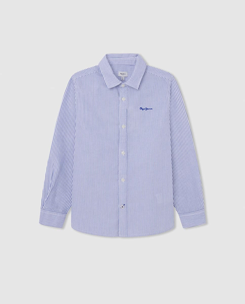 Camisa Oxford de rayas con logo para niño
