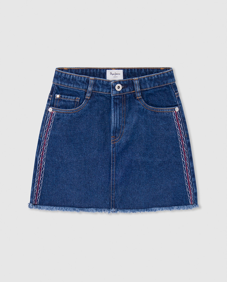 Falda denim con bordados laterales para niña