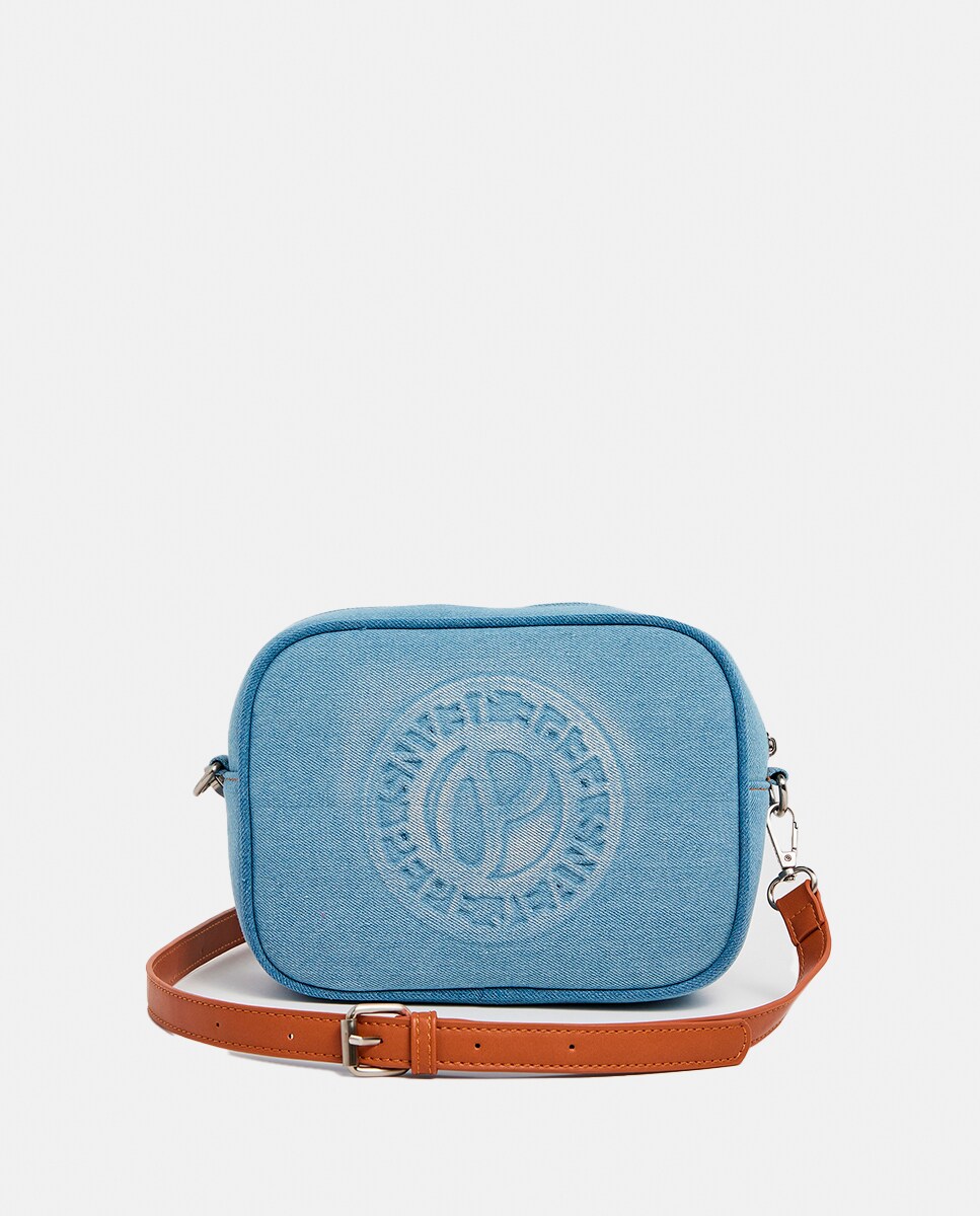 Bandolera pequeña en azul claro con logo frontal y cremallera