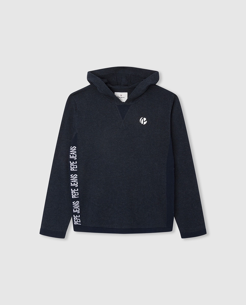 Jersey de punto de niño en azul marino con capucha y logo lateral