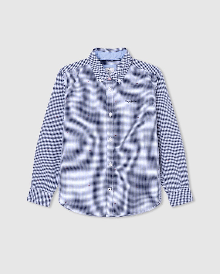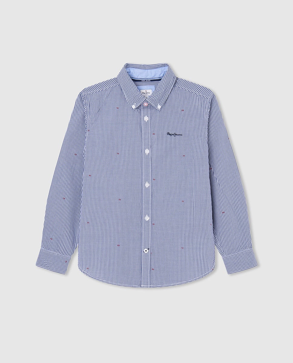 Camisa a cuadros de niño manga larga y microestampado