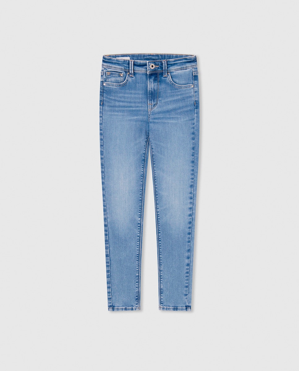 Vaquero de niña ajustado de tiro alto