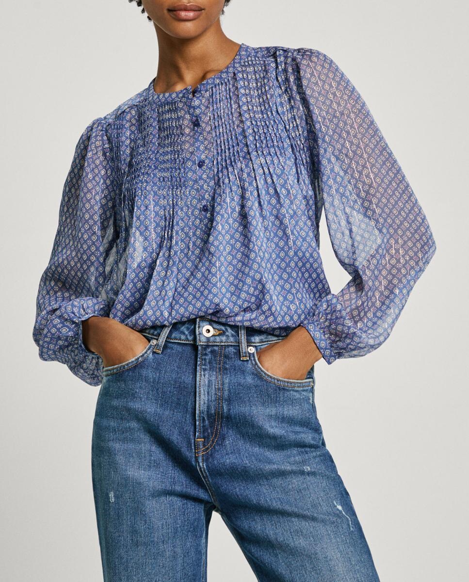 Blusa de mujer de manga larga cuello mao
