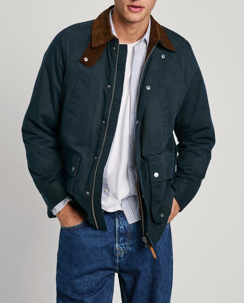 Chaqueta de hombre con cuello y puños de pana