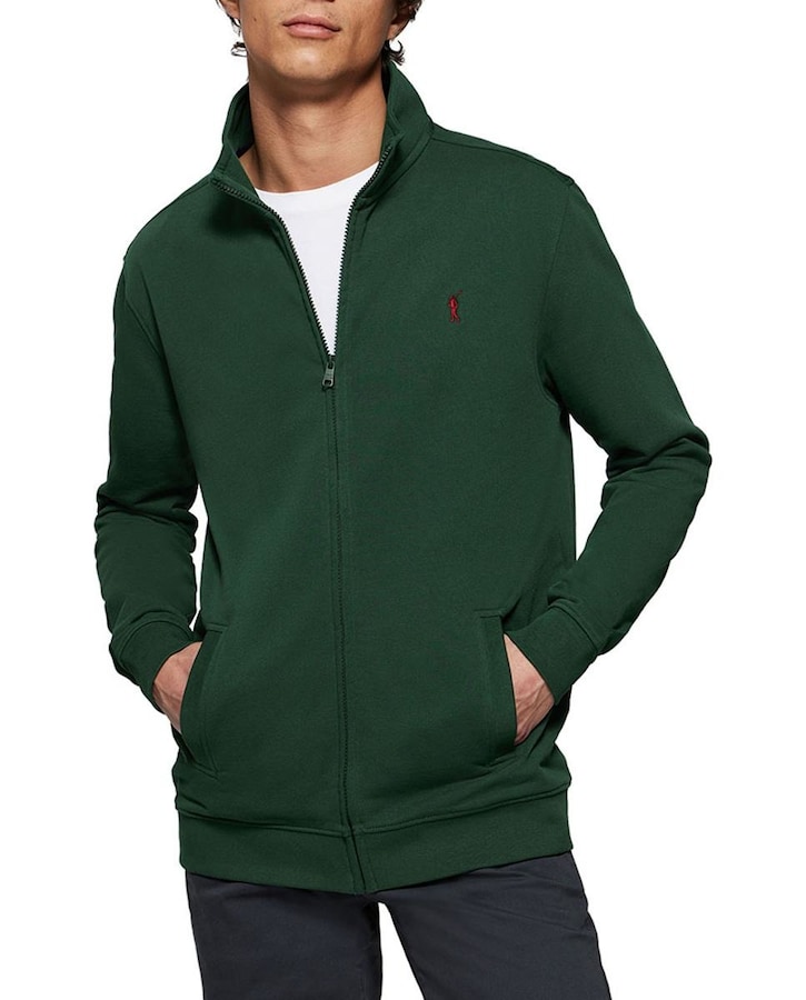 Sudadera abierta de cuello elevado verde botella con logo Rigby Go