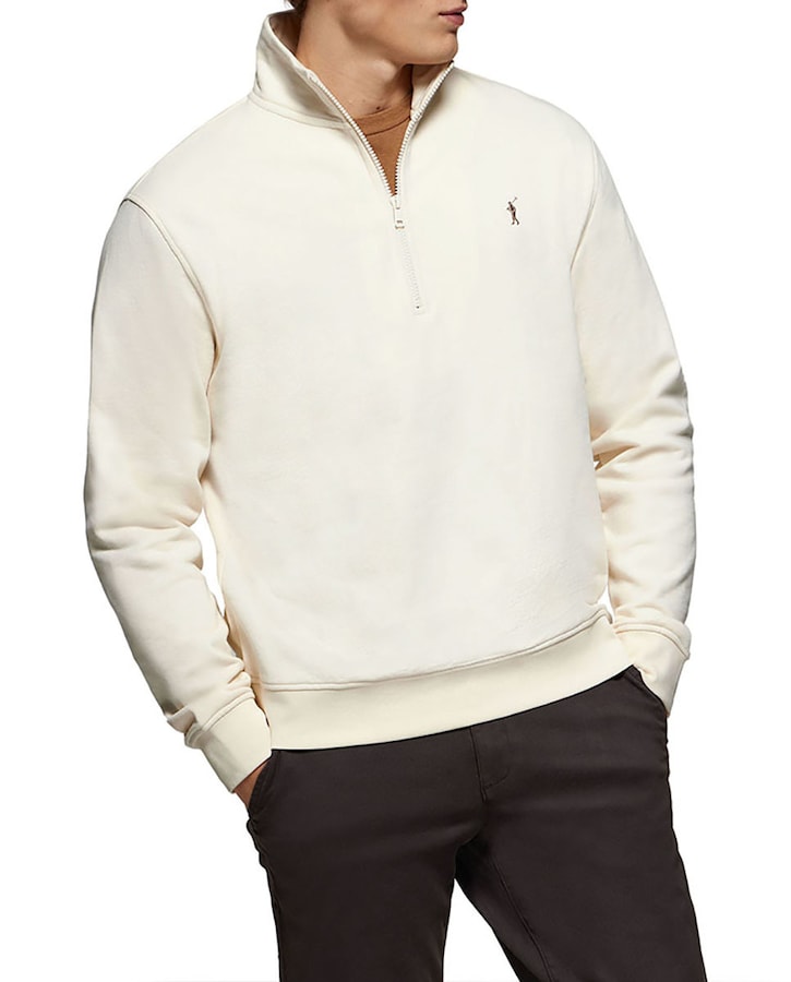 Sudadera de media cremallera beige con logo Rigby Go