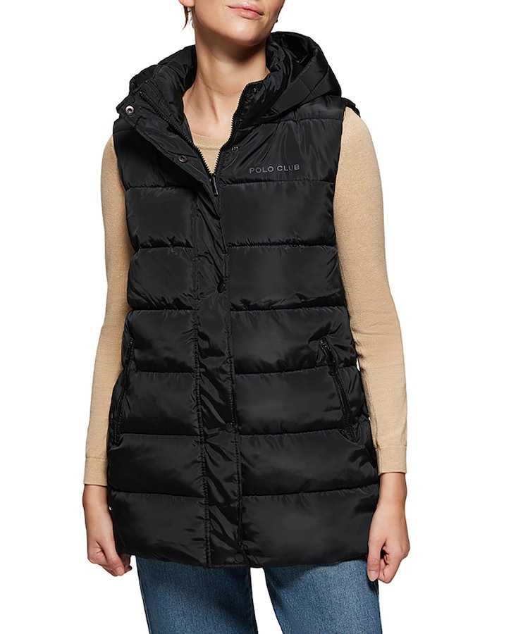 Chaleco negro acolchado con capucha y print Polo Club