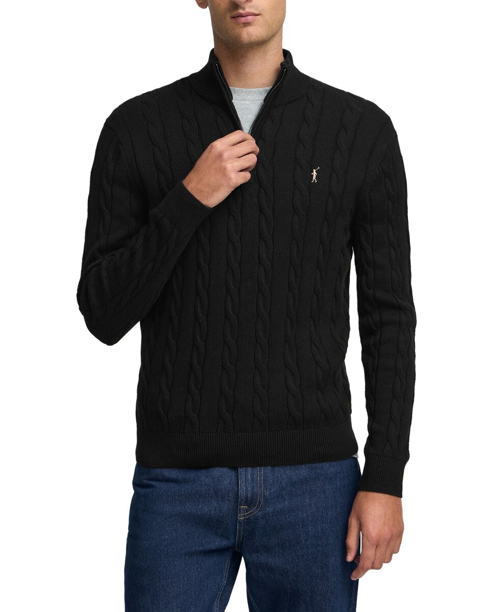 Jersey de hombre de punto trenzado en mezcla de lana con media cremallera y bordado Rigby Go