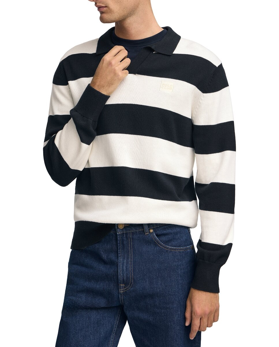 Jersey de hombre de rayas con cuello polo y parche Polo Club