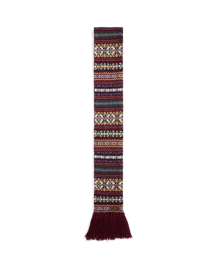 Bufanda de mujer de lana con estampado de cenefas y flecos