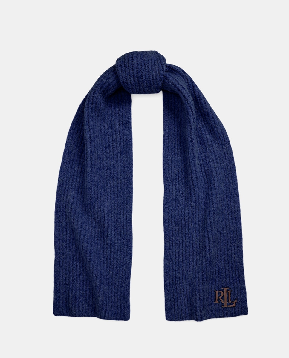 Bufanda de mujer lisa con detalle RL en piel.
